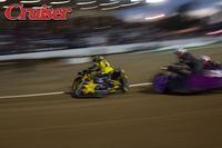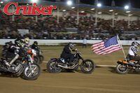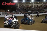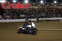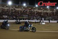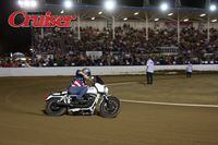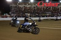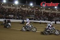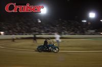 As if the speedway bikes and nitrous injected sidecars weren't enough hi-octane adrenaline for you, the guys at Costa Mesa Speedway have opened up a couple nights of the season to Harley-Davidsons (any type of bike really, but they call it Harley Night and guess what shows up?). Harley Nights at the Speedway have been a tradition for years and are always a ton of fun. You warm up the night with a beer or two while watching the Speedway bikes and the side cars, and just when you start to wonder about them... you can hear the Harleys start to warm up in the back.